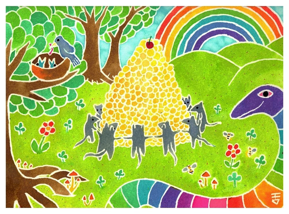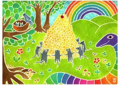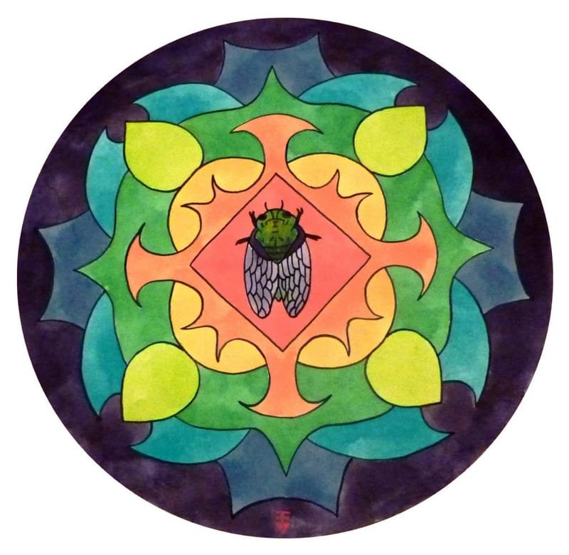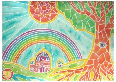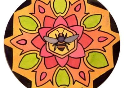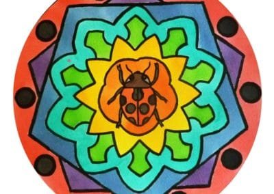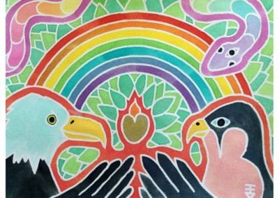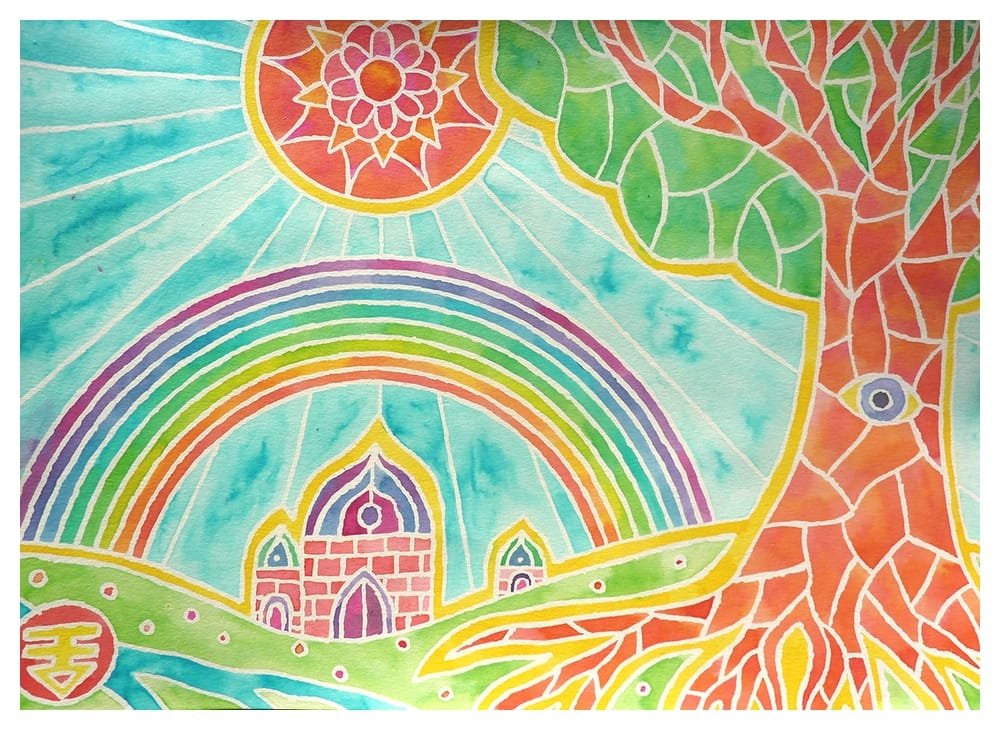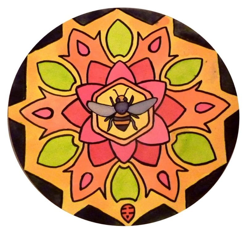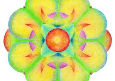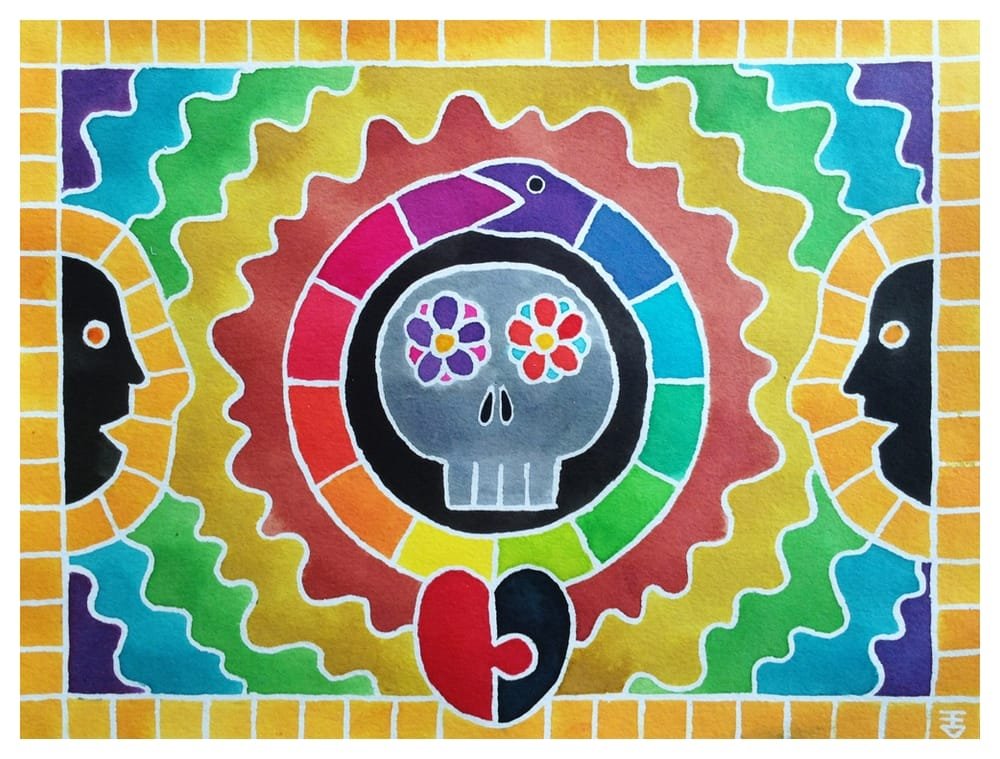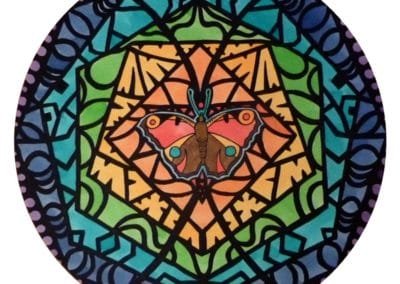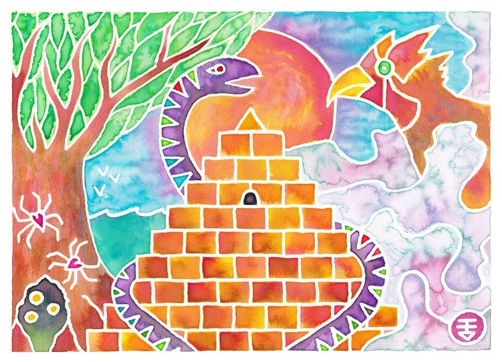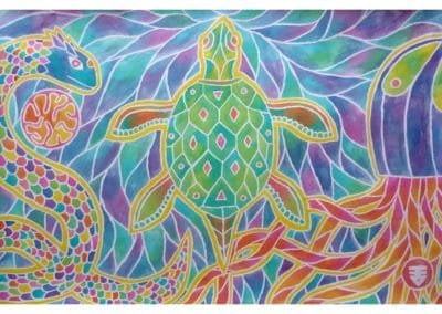 Si les Posca restent mon style préféré, j’ai exploré d’autres techniques. Pour la plupart de ces tableaux, j’utilise de l’aquarelle liquide ; les plus récents sont effectués au crayon de couleur. L’inspiration est toujours sauvage et chamanique, dans un style plus naïf que mes autres dessins.