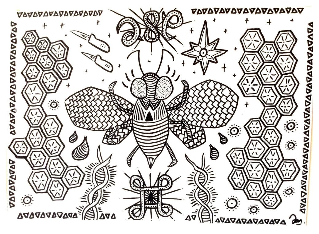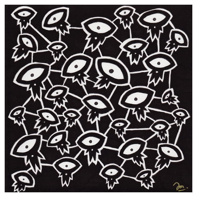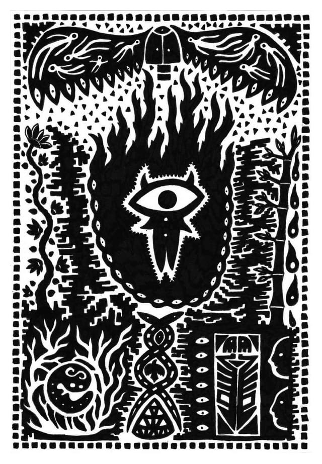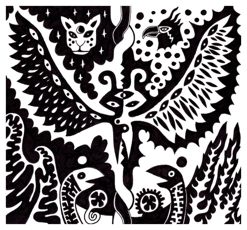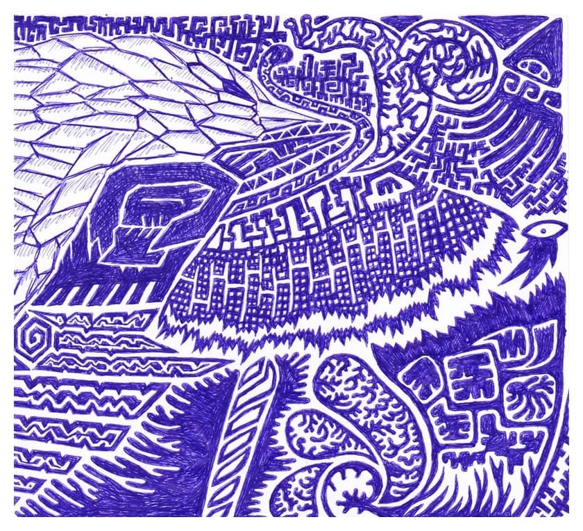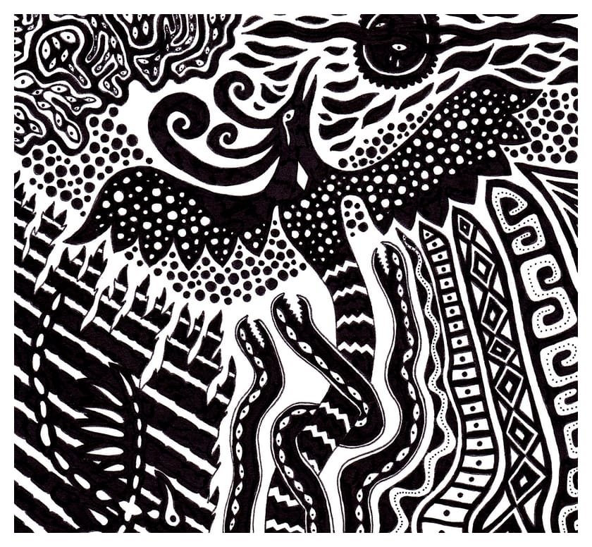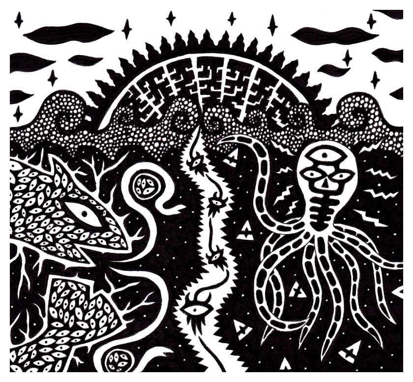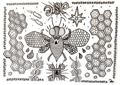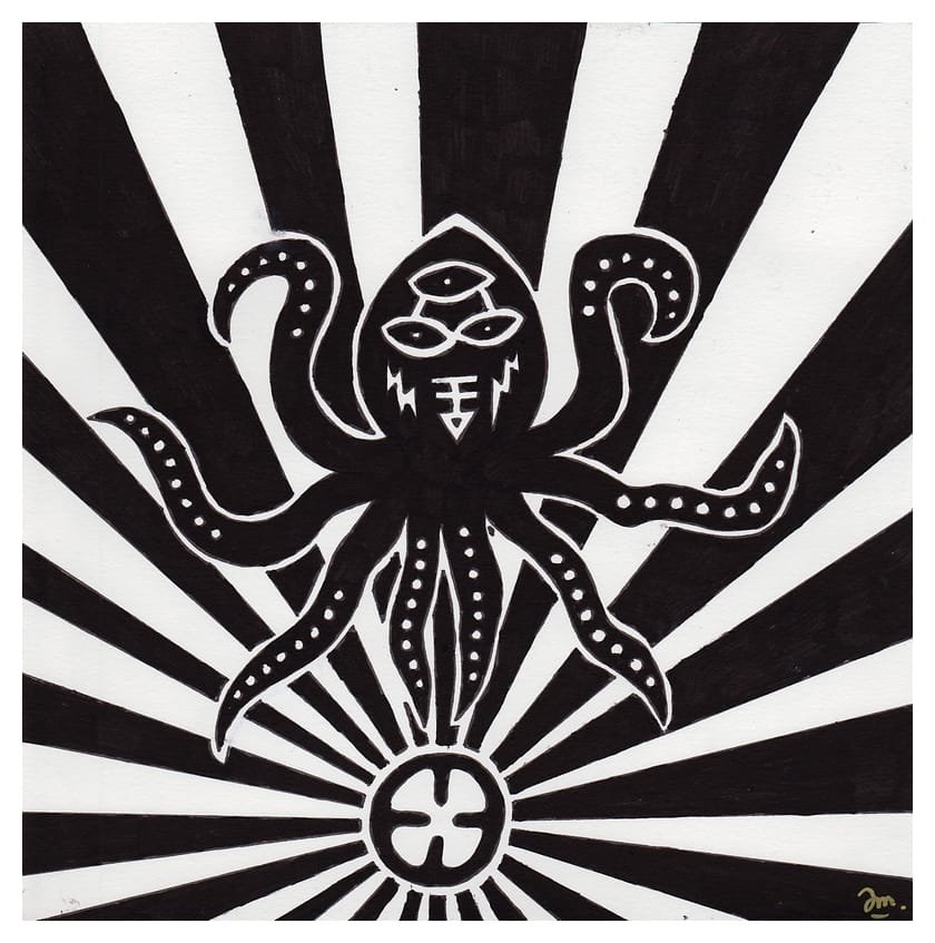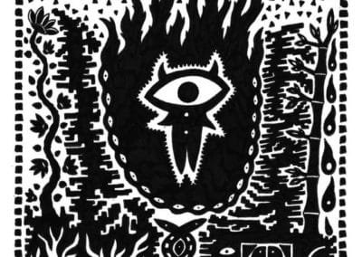 Ce sont mes premiers dessins à la main, d’abord au stylo à bille puis au feutre fin. J’y invente Nébulon, un petit extraterrestre cyclope et polymorphe qui se retrouve sur la couverture de mon premier album musical Insomnia (2013) ; album pour lequel j’ai conçu un dessin unique pour chacune des dix chansons. J’ai après abandonné ce style monochrome au profit de la couleur, plus riche et expressive.